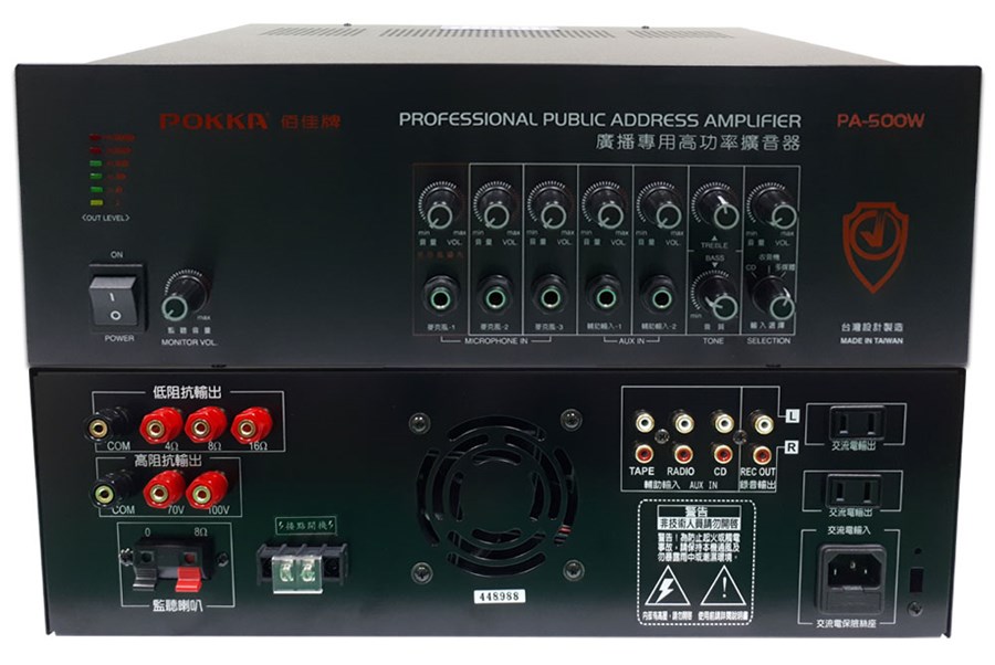 - 最大輸出功率500W 純擴音器