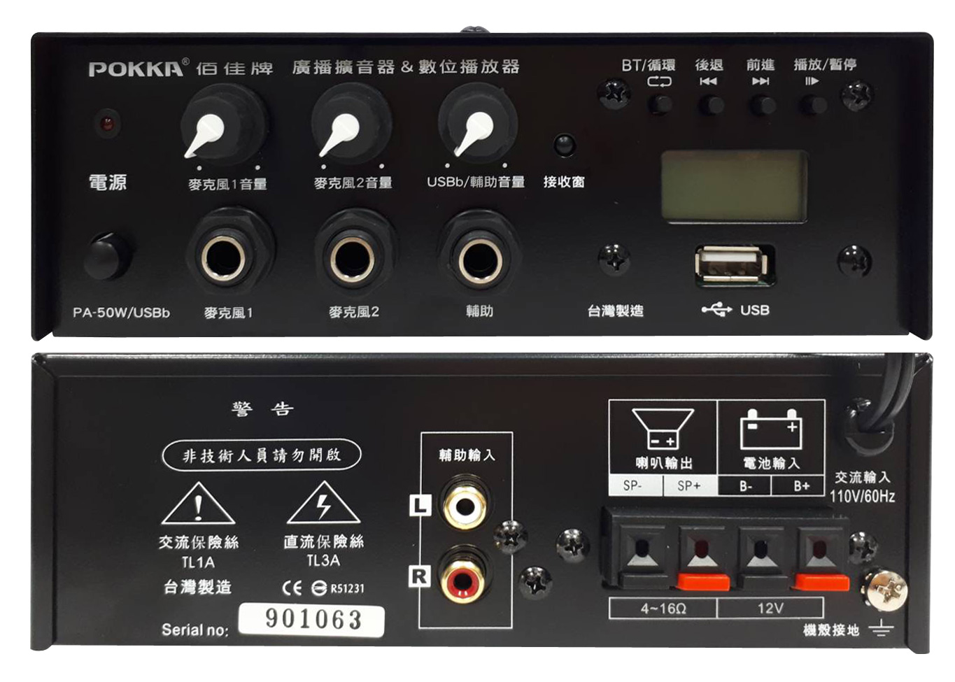 PA-50W 綜合擴大機USBb版 最大輸出功率50W/附數位播放器(USB插槽/藍芽) 適用:學校,工廠,機關團體,教學&廣播,夜市,攤商, 宗教佈道,社區集會/一年保固/台灣製造