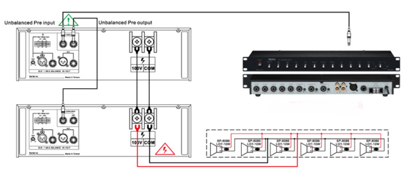 - 內建輸入訊號串接迴路功能,高壓輸出可併接數台(同規格機種),以增加輸出功率